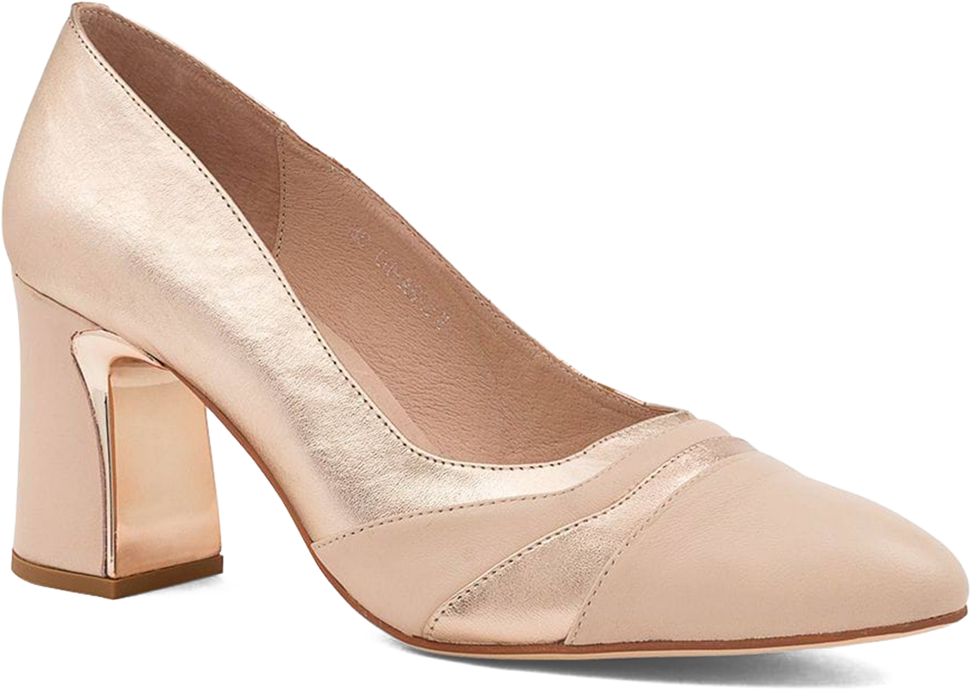 Step into effortless 70’s-inspired glam with KISHA, the leather block heel pump designed to make a statement. Featuring contrasting panels and a sturdy block heel, these pumps add dimension and visual interest to any outfit, making them a versatile choice for both workdays and evening occasions.