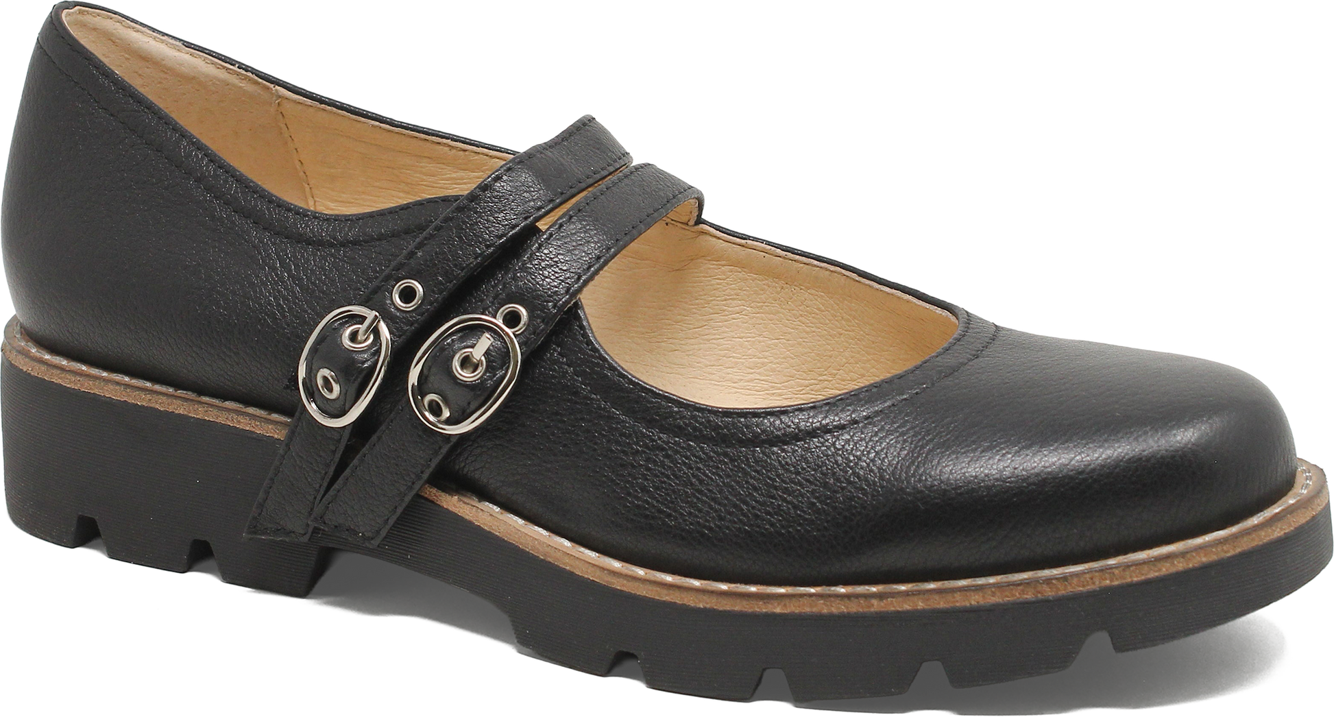 Crafted from premium leather, DABBIE combines a classic Mary Jane silhouette with modern detailing for a contemporary twist. Twin buckles allow for a secure, adjustable fit, while the leather lining ensures all-day comfort. Resting on a chunky treaded sole, DABBIE provides stability and support, making it perfect for workdays, casual outings, or weekend adventures.