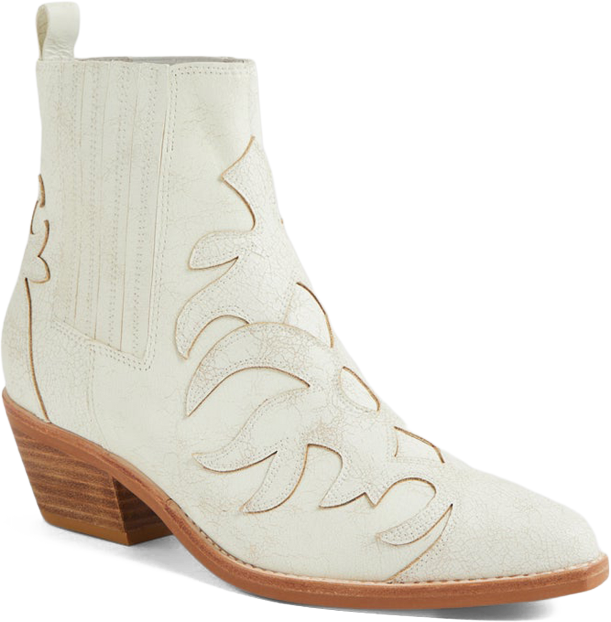 - Sleek, modern western ankle boot silhouette